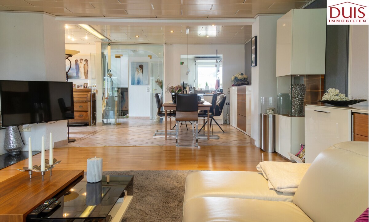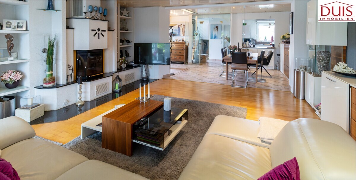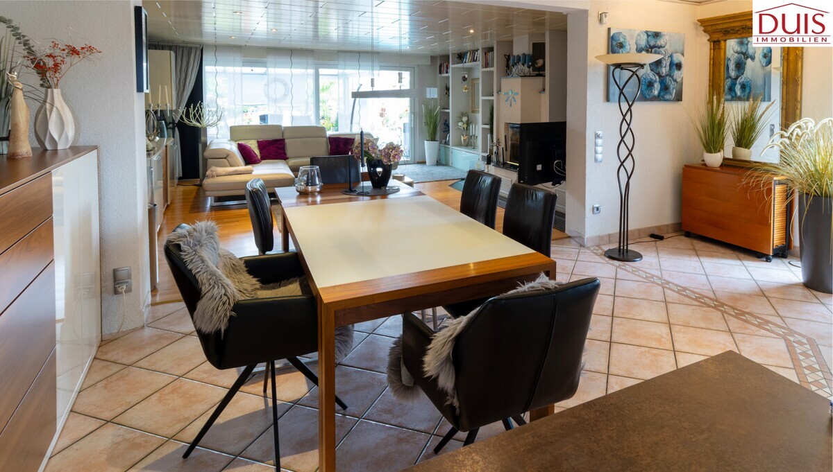 Im Erdgeschoss befindet sich der großzügige Wohn- und Essbereich, der durch einen Kamin besonders gemütlich ist. Hier befindet sich der zentrale Treffpunkt des Hauses, von dem aus alle Räume gut erreichbar sind. Angrenzend an den Wohn- und Essbereich befindet sich direkt die gut nutzbare Küche. Fensterfronten sorgen für lichtdurchflutete Räume und direkten Blick ins Grüne. Ein besonderes Highlight ist der ca. 3 Jahre alte Wintergarten mit schiebenden Glaselementen, der viel Licht und eine angenehme Atmosphäre schafft – perfekt für gemütliche Stunden zu jeder Jahreszeit. Der Zugang zum Garten eröffnet eine nahtlose Verbindung zwischen Innen- und Außenbereich und macht das Erdgeschoss zum zentralen Mittelpunkt des Familienlebens.