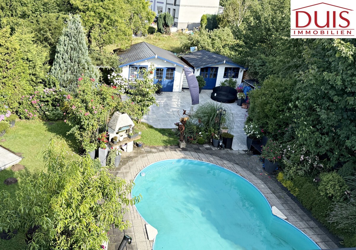 Die Vollunterkellerung des Hauses bietet zusätzlichen Stauraum und vielfältige Nutzungsmöglichkeiten; hier lassen sich Hobbyräume, Lagerräume oder Wellnessbereiche realisieren. Zwei Balkone und eine wunderschöne Terrasse laden zum Entspannen im Freien ein. Der liebevoll angelegte Garten mit zwei Gartenhäuschen und einem Pool bietet viel Platz für Gartenliebhaber und Kinder zum Spielen. Das große Grundstück hinter den Gartenhäuschen eröffnet zudem großes Potential, den Außenbereich individuell zu gestalten. Zum großzügigen Pool gehört eine Pumpen- und Filteranlage, welche sich in einem Pumpenhäuschen befindet. Das nebenliegende Badezimmer mit Dusche bietet zusätzlichen Komfort. Beides schließt an die großzügige Doppelgarage an, welche ausreichend Platz für Fahrzeuge und weiteren Stauraum bietet.