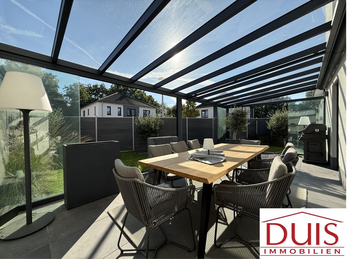 Ein besonderes Highlight ist die überdachte Terrasse mit Glasdach, Schiebetüren und elektrischem Sonnenschutz, die ganzjährig genutzt werden kann. Der liebevoll angelegte Garten verfügt über ein automatisches Bewässerungssystem, gespeist von einem eigenen Brunnen – pflegeleicht und nachhaltig zugleich. Die moderne Haustechnik umfasst unter anderem eine Fußbodenheizung im Erd- und Obergeschoss sowie eine 8 Meter lange Garage mit Wallbox für das komfortable Laden Ihres E-Fahrzeugs.