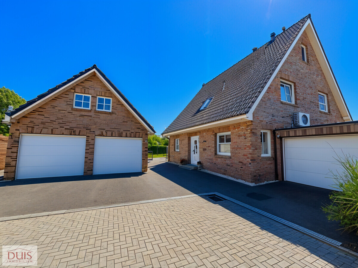 Für Fahrzeuge und zusätzlichen Stauraum stehen drei Garagen zur Verfügung – zwei mit Sektionaltoren und eine mit ISO-Sektionaltor. Eine Garage ist voll isoliert und beheizt, ideal als Werkstatt oder Hobbyraum nutzbar.