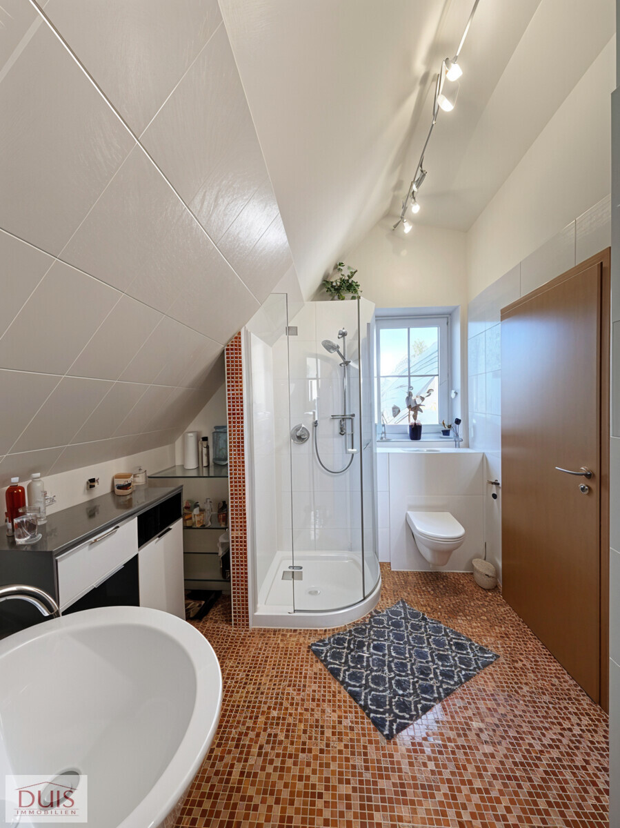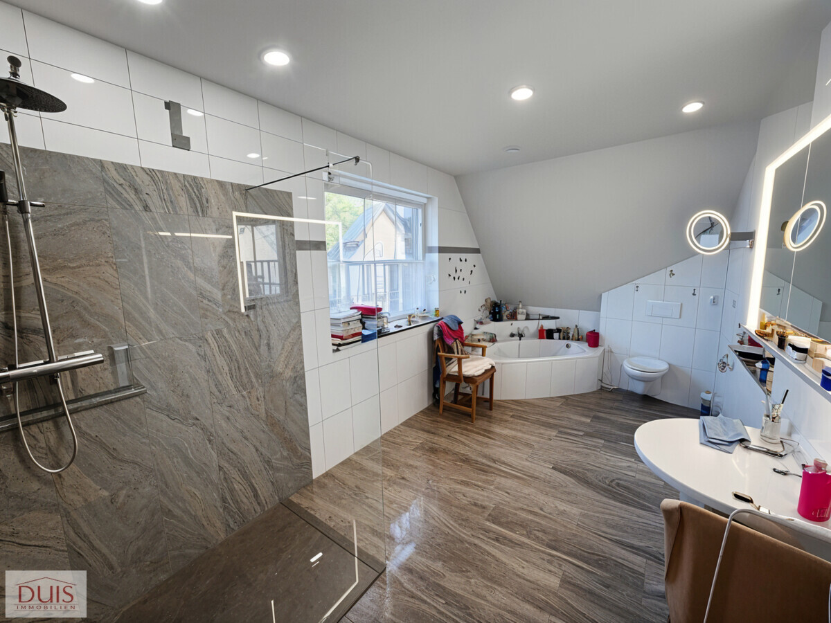 Auch im Inneren überzeugt das Haus mit Komfort auf allen Ebenen. Auf jeder Etage befindet sich ein Badezimmer – insgesamt drei, alle ausgestattet mit integrierten Radios. Die kontrollierte Wohnraumlüftung mit Wärmerückgewinnung und Erdwärmetauscher sorgt für ein angenehmes Raumklima, während Klimaanlagen (Baujahr 2022) auch an heißen Tagen für optimale Temperaturen sorgen.