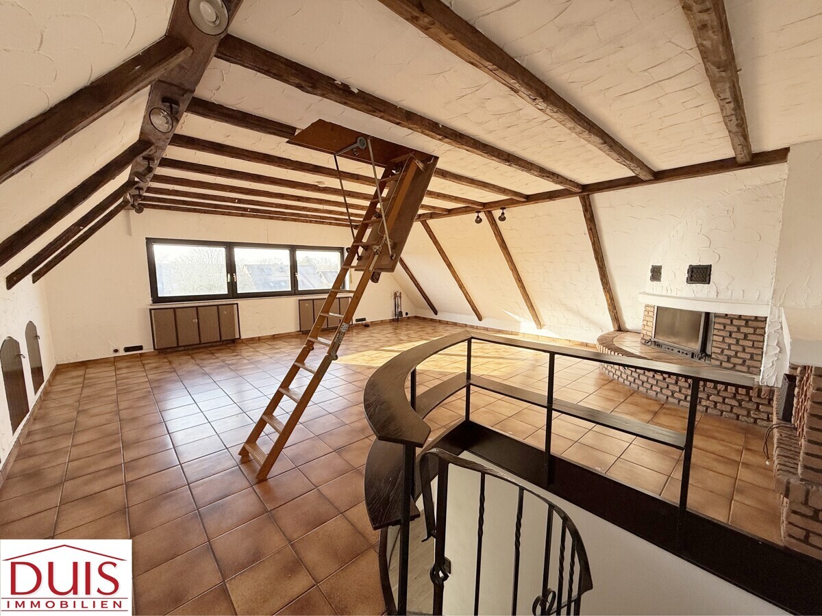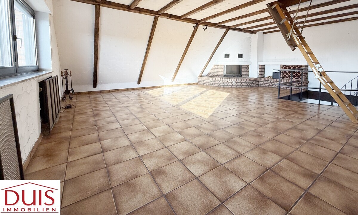 Mit einer Wohnfläche von ca. 105 m² erstreckt sich die Wohnung über zwei Ebenen und überzeugt durch ihr besonderes Wohnkonzept. Der Wohn- und Essbereich mit Kamin im ausgebauten Spitzboden verleiht der Wohnung eine offene, helle Atmosphäre und unterstreicht den Maisonette-typischen Charakter.